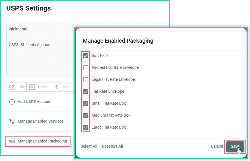 Now, only the services and package types you have enabled will be available to you previewing rates or configuring shipments.