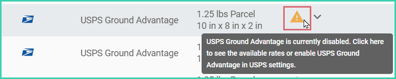 - Unprocessed shipments that were configured with a disabled service or package type will display an error. To create a label for the shipment, either: