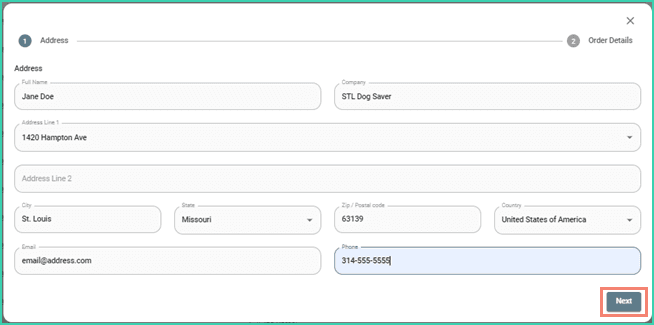 Enter the Ship To address information. Then, click Next.