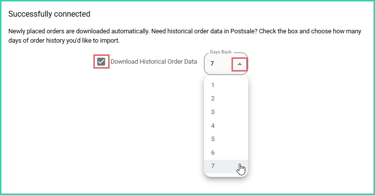 Historical orders will be automatically imported into Postsale based on the number of days you selected in step 7.