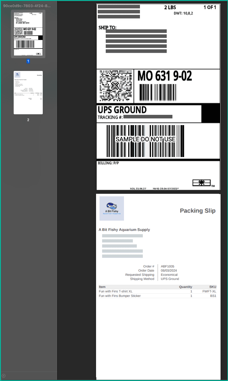 Now, when you print your shipping labels, the correct template will be used to format the label for your printer. If you opted to include an additional document with each shipment, it will be printed automatically at the same time as your labels.