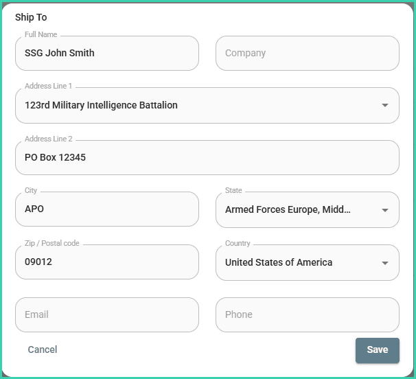 The good news is that formatting military addresses in Postsale is not difficult. To help simplify things a bit, we have listed the available Postsale address fields and which component of a military address should be entered into each field.