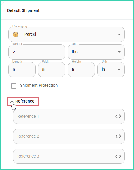 Label references are added to the reference fields in the Dock when configuring your shipment details prior to creating a shipping label. The reference fields can be found in the same place, regardless of the shipping carrier you are shipping with: