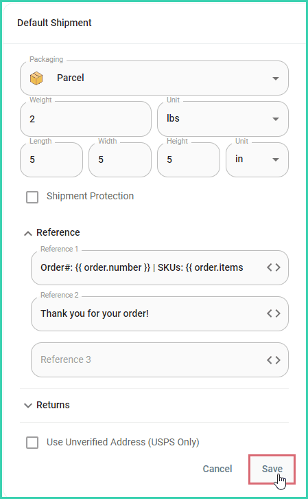 This method is best when you would like the same reference to be printed on every shipping label without having to manually add it to each shipment.