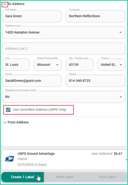 Use an Unverified Address with USPS
