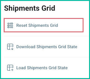 Download, Load, and Reset the Shipments Grid State