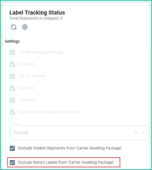 - Specify whether or not you wish to include return labels from being displayed as ‘Carrier Awaiting Package’.
