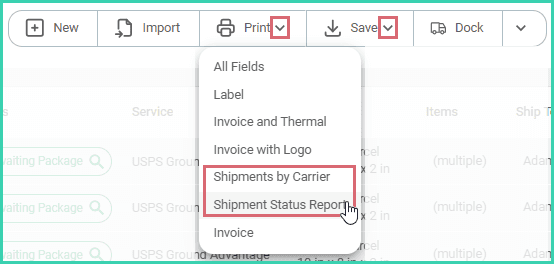 Select either Print or Save from the Order Actions Menu. Then, select the report you wish to save or print from the drop-down menu.