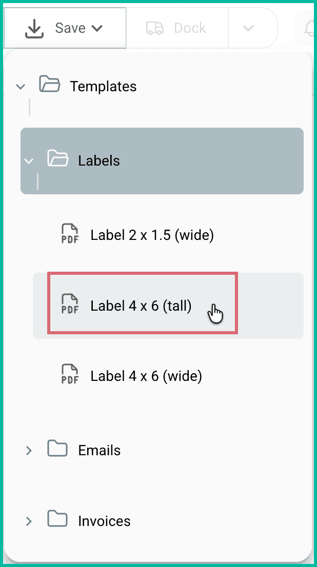 Select the template you wish to save. In this example, we selected the Label 4 x 6 (tall) template to save the shipping label to a PDF file.